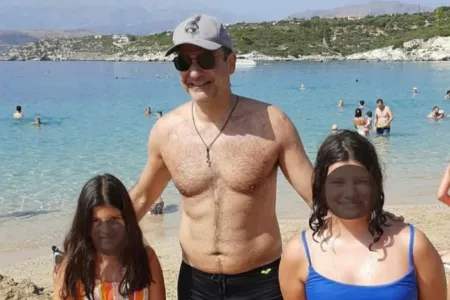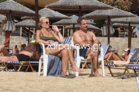 Κυριάκος Μητσοτάκης και Μαρέβα στην παραλία Καλύβια της Τήνου Την ευκαιρία να «φορτίσει» τις μπατα…
